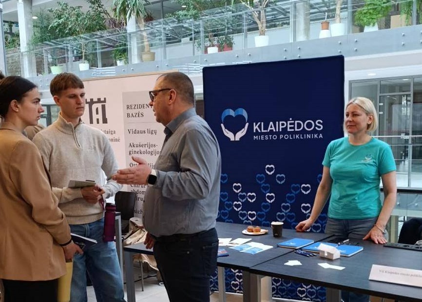 Klaipėdos miesto poliklinikos vadovai antrus metus iš eilės dalyvavo Lietuvos sveikatos mokslų univeristeto (LSMU) organizuotoje Rezidentūros dienoje Kaune, kur būsimiems jauniems gydytojams galėjo plačiau pristatyti gydymo įstaigą bei turėjo galimybę pabendrauti su vyresniųjų kursų medicinos studentais.