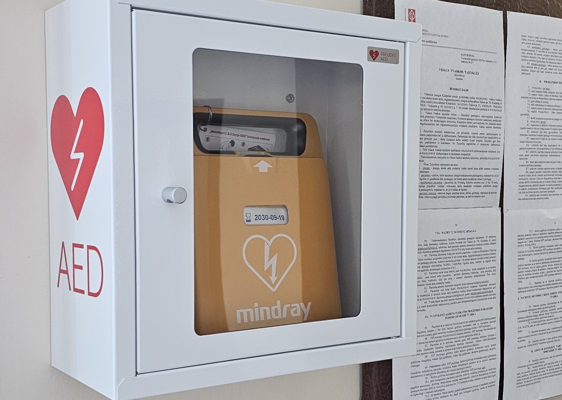 Klaipėdos miesto poliklinika įsigijo šešis automatinius išorinius defibriliatorius (AID). Sustojus širdžiai, pirmosios minutės yra lemiamos. Turėdami šią įrangą vietoje, skubią pagalbą galime suteikti dar iki atvykstant greitajai pagalbai.