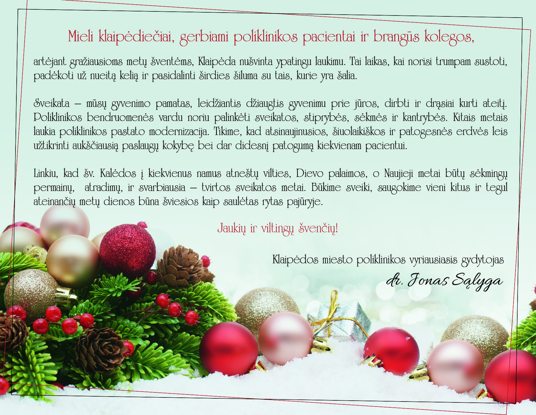 Linkime Jaukių ir viltingų švenčių!
